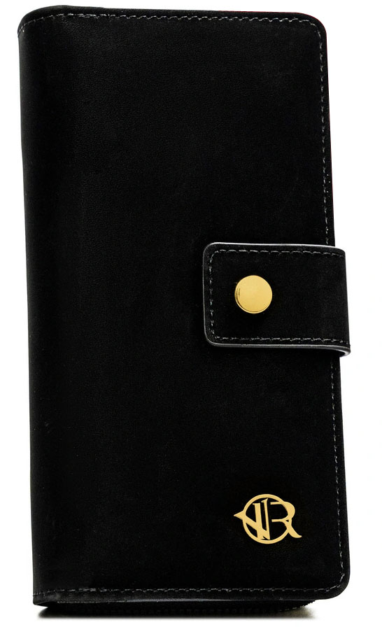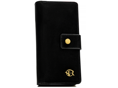 Elegantni novčanik crne boje od kvalitetne eko kože sa praktičnom kopčom. Unutra se nalazi 8 mesta za kartice, deo za papirne novčanice i pregrada za sitan novac sa dodatnim rajfešlusom. Dimenzija 11x15 cm. Pakovan u dekorativnu poklon kutiju, ovaj novčanik srednje veličine spaja praktičnost i moderan izgled – savršen poklon za svaku priliku.
