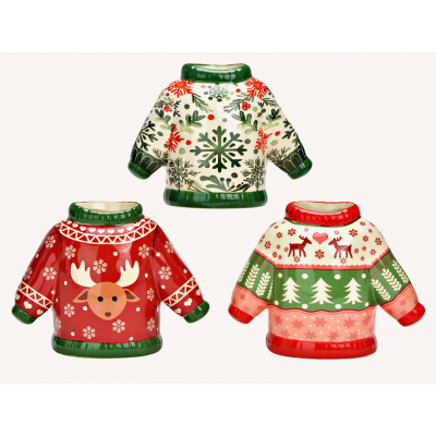 Ljupke keramičke šolje sa tanjirićem i poklopcem u obliku jelke sa zvezdicom na vrhu. Neobičan dizajn, simpatični detalji, originalan oblik čine da ih možete pokloniti u paru ili na komad kao savršen božićni poklon.