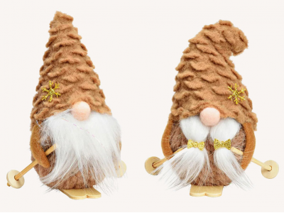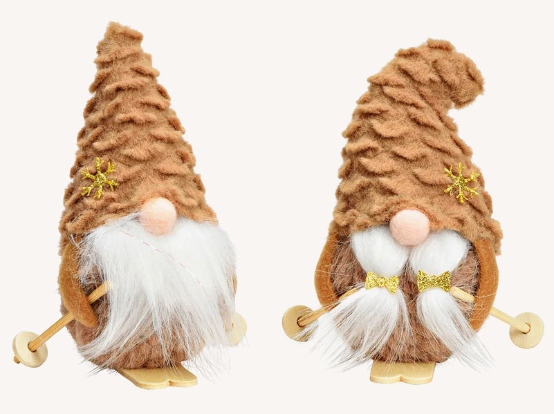Vesela figura patuljka-skijaša u vunenoj braon kapici i sa zlatnim detaljima. Ovi simpatični patuljci – dečak i devojčica – visoki 13cm, savršeni su da ukrase policu, sto ili jelku i podsete na čaroliju zime.