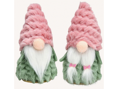 Figure patuljaka – dečak i devojčica – sa roza kapicama i u zelenom džemperu, visine 13cm. Ovi šarmantni patuljci idealni su za dečiju sobu, radni sto ili kuhinjski prozor, da ulepšaju celu zimu, ne samo dane praznika.