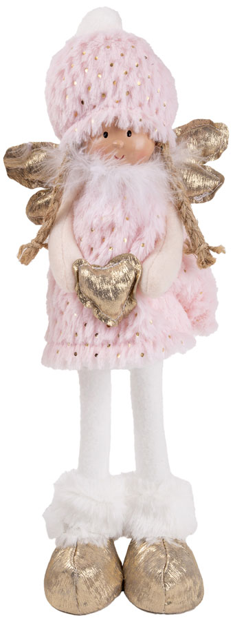 Figura devojčice u roza bundici sa zlatnim anđeoskim krilima i srcem u rukama odiše toplinom i elegancijom zime. Visine 36 cm, ukrašena sitnim šljokicama i zlatnim detaljima,ona je savršen poklon za devojčicu, da njen kutak u sobi zablista zlatnom magijom.