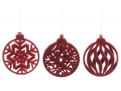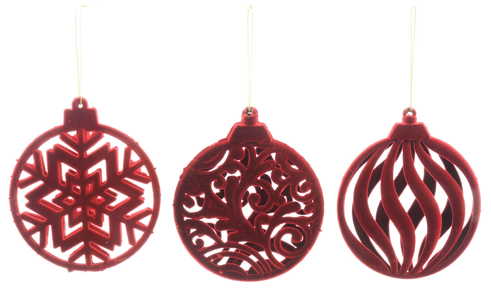 Plišani bordo ukrasi za jelku i praznične aranžmane, dimenzija 8 cm, donose dašak raskoši i prefinjenosti u svaki kutak doma. Elegantni i nenametljivi, tri motiva kugli. Lepi pojedinačno a i odlično se kombinuju sa drugim ukrasima.