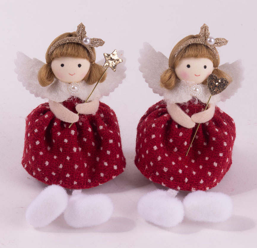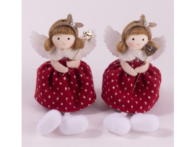 Ukras devojčice sa kikicama, irvas rajfom i bordo haljinici na tufne donosi dašak magije u svaki praznični aranžman. Visine 16 cm, u ruci drži čarobni štapić – jedan sa srcem, drugi sa zvezdom. Birajte svoju omiljenu malu vilu i unesite magiju u svaki kutak doma.