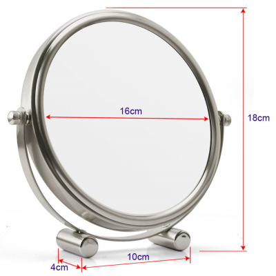 Stono kozmetičnko metalno ogledalo sa uveličanjem x5. Ogledalo je malo i kompaktno, za sve one koji više vole ovakve modele. Ovo je unisex ogledalo, jer je nisko i jednostavno, funkcionalno a istovremeno i moderno. Opšte omiljena srebrna boja, minimalistički dizajn i dobro uveličavajuće ogledalo čine da je ovo poklon za gotovo svaku osobu, bez obzira na pol ili uzrast. Visina ogledala je 18cm. ima stalak u obliku dva mala valjka. Pakovano je u belu poklon kutiju, bezbedno za slanje.
