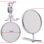 Praktično metalno ogledalo sa uveličavajućim staklom x5 i robusnom ručkom koja se savija. Ovakvo ogledalo je praktičan i kompaktan komad, savršen za putovanja i svakodnevnu upotrebu. Njegov dizajn omogućava lako rukovanje, dok sklopiva drška pruža siguran stalak za precizno korišćenje. Idealan za male prostore, gde može stajati okačeno na zidu kada se ne koristi. Obzirom da je malo i sklopivo, može postati neophodan deo koji će svaka žena koja često putuje prvo staviti u kofer. Rasklopljeno ogledalo je veličine 28cm, pogodno za kačenje na zid, ili za putovanja. Prečnik samog stakla je 14cm. Pakovano je u belu poklon kutiju, pogodno za slanje.