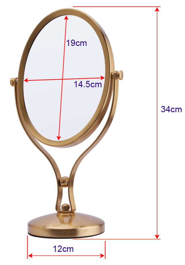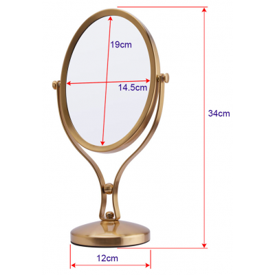 Ovalno metalno ogledalo sa uveličanjem x5 boje starog zlata. Ogledalo je kao iz bajke, donosi dašak magije u svaki prostor. Sa prelepim, antiknim finišom u zlatnoj boji, ovaj komad podseća na kraljevske predmete iz prošlih vremena. Njegov elegantan dizajn i boja starog zlata ga čine luksuznim poklonom, naročito osobi koja voli glamur i sofisticiranosti. Visina ogledala je 34cm, a visina samog stakla 19cm. Pakovano je u belu poklon kutiju, bezbedno za slanje.