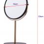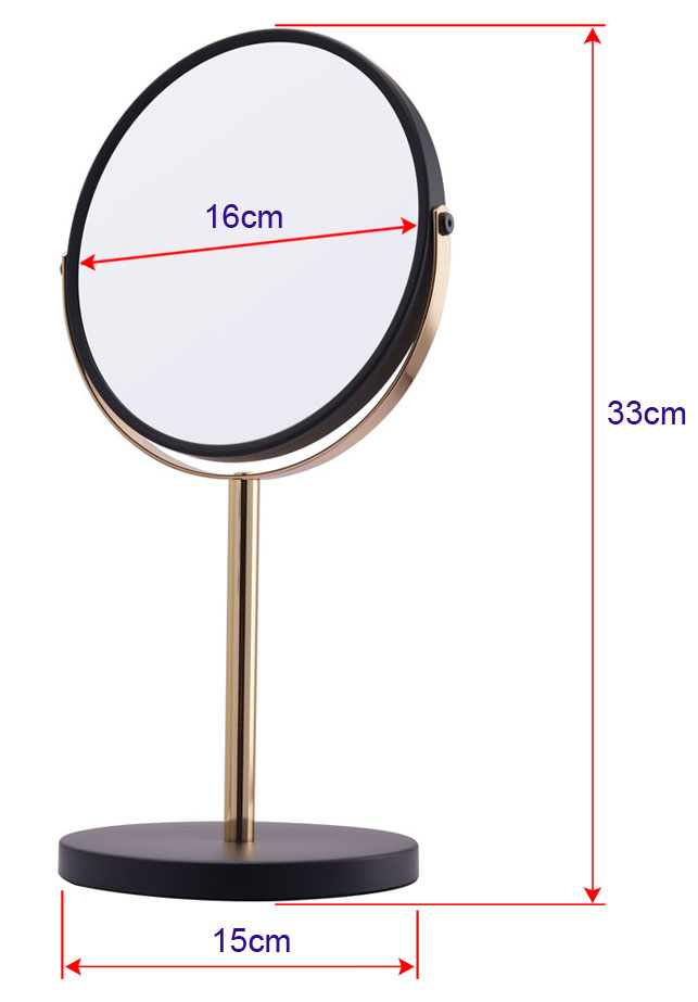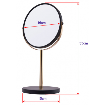 Stono metalno ogledalo crne boje sa zlatnom nožicom, uveličanjavajuće staklo x7. Sa visokim uveličanjem, pruža izuzetnu preciznost za šminkanje, brijanje ili detaljanu negu. Zlatna nožica u savršenom skladu sa mat crnim ogledalom čini ga idealnim poklonom za one koji traže luksuzan, ali praktičan dodatak za svoj prostor. Visina ogledala je 33cm, a prečnik samog stakla 16cm. Pakovano je u belu poklon kutiju, bezbedno za slanje.