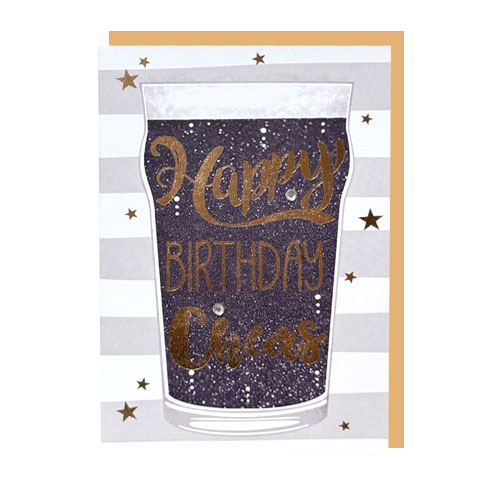 Mini čestitka sa kovertom – savršen detalj uz svaki poklon, dimenzije 7x10cm. Dovoljno mala da stane ispod ukrasne mašne, a opet dovoljno velika da na njoj zapišete iskrenu poruku, čestitku ili lepu misao. Na prugastoj podlozi čaša puna crnog piva i natpis Happy Birthday, cheers. Upakovanau u providnu zaštitnu foliju. Kupovinom 160 kom bilo koje vrste dobijate prezentoar za izlaganje.