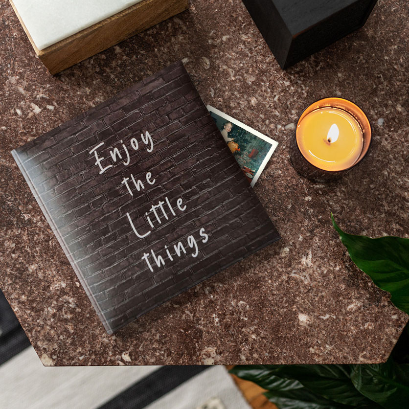 Moderan i upečatljiv, ovaj foto album u imitaciji crnih cigala sa natpisom ENJOY LITTLE THINGS unosi dozu urbanog šarma u vaše uspomene. Predviđen za 200 fotografija formata 10x15cm, sa memo prostorom pored svake slike za datume i lične beleške. Dimenzija 21x22cm – snažan podsetnik da u životu najviše vrede mali trenuci