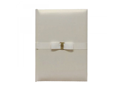 Foto album sa satenskom mašnom na naslovnoj strani. 40 slip in džepova za fotografije 13x18. Za odabranih 40 najlepših fotografija sa venčanja. Dimenzije albuma 16x21cm.