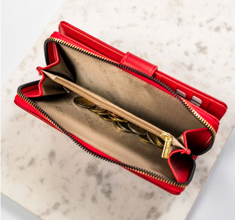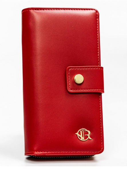 Elegantni novčanik crvene boje od kvalitetne eko kože sa praktičnom kopčom. Unutra se nalazi 8 mesta za kartice, deo za papirne novčanice i pregrada za sitan novac sa dodatnim rajfešlusom. Dimenzija 11x15 cm. Pakovan u dekorativnu poklon kutiju, ovaj novčanik srednje veličine spaja praktičnost i moderan izgled – savršen poklon za svaku priliku.