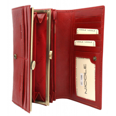 Kožni ženski novčanik izuzetno elegantan. Ima tri pregrade za papirne novčanice, poseban odeljak sa rajsferšlusom i deo sa elegantnom biglom u boji starog zlata (za metalne novčiće). 10 džepića za kartice i jedan sa prozorom (za fotografiju ili karticu koja se najčešće koristi). Dimenzije novčanika: 19x10x3,5cm.