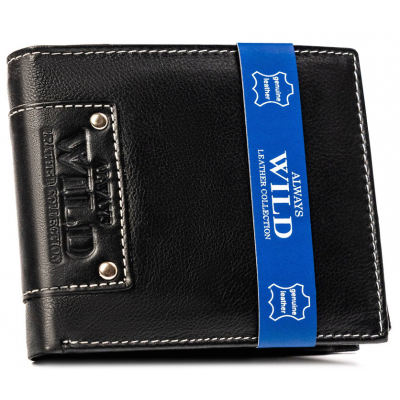 Novčanik od mat crne kože sa ukrasnim štepovima iz kolekcije Always Wild. Veliki broj pregrada za kartice i dokumenta. Deo za sitan novac i fotografije. Novčanik je sa RFID zažtitom. Pakovan u plavu poklon kutiju. Dimenzije: 12X10X3cm
