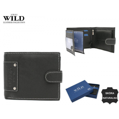 Novčanik od mat crne kože sa ukrasnim štepovima iz kolekcije Always Wild. Veliki broj pregrada za kartice i dokumenta. Deo za sitan novac i fotografije. Novčanik je sa RFID zažtitom. Pakovan u plavu poklon kutiju. Dimenzije: 12X10X3cm