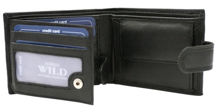 Novčanik od mat crne kože iz kolekcije Always Wild. Veliki broj pregrada za kartice i dokumenta. Deo za sitan novac i fotografije. Novčanik je sa RFID zažtitom. Pakovan u plavu poklon kutiju. Dimenzije: 12X10X3cm
