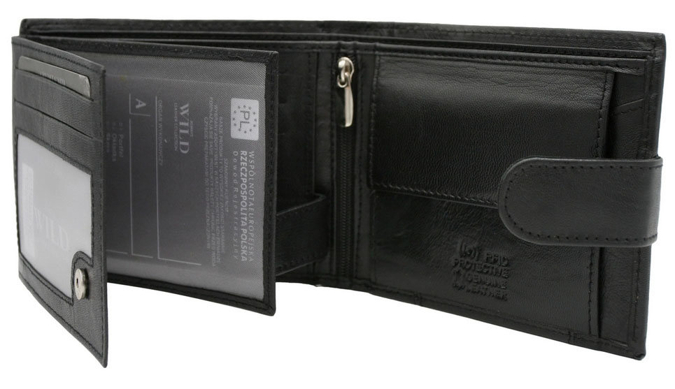 Mladalački muški novčanik od kože. Na prednjoj strani je utisnuto ALWAYS WILD. Novčanik se zatvara kopčom. Unutrašnjost ima mesta za dosta kartica i taj segment se takođe zatvara manjom kopčom, zatim ima dva odeljka za papirni novac a između odeljka za kartice i kovanice postoji unutrašnji džep koji je osiguran rajsferšlusom. Novčanik ima RFID zaštitu (što u prevodu znači zaštitu od identifikacije putem radio-frekvencije.) Novčanik je dimenzija:13xh10x2cm.