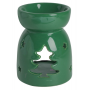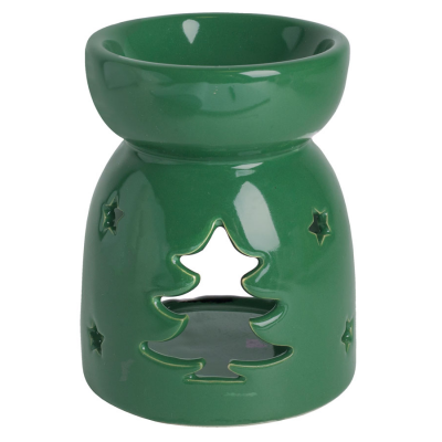 Keramički svećnjak za eterično ulje , sa prozorom u obliku jelkice, zelene boje. Na svećnjaku su i maleni otvori u obliku zvezdica kroz koje prolazi svetlost sveće kada se upali. Visina je 11,5 cm.