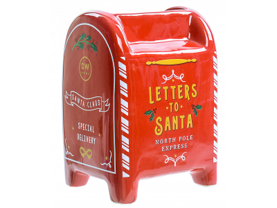 Keramička figura u obliku sandučeta za pisma Deda Mrazu,u prepoznatljivoj crvenoj boji, sa natpisom “Letters to Santa”. Sanduče nije samo dekorativno — deca u njega zaista mogu ubaciti svoja pisma želja. Dimenzijama 10 x 15cm, za policu ili ispod jelke, predivan poklon bilo kojem klincu.