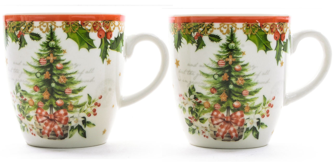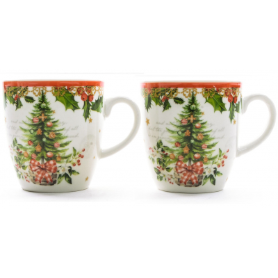 Set od dve male keramičke šolje interesantno pakovane. Krasi ih romantična slika ukrašene jelke i imela po borduri. Neodoljivo romantične, idealne za prazničnu sezonu i sve ljubitelje esspreso kafice.