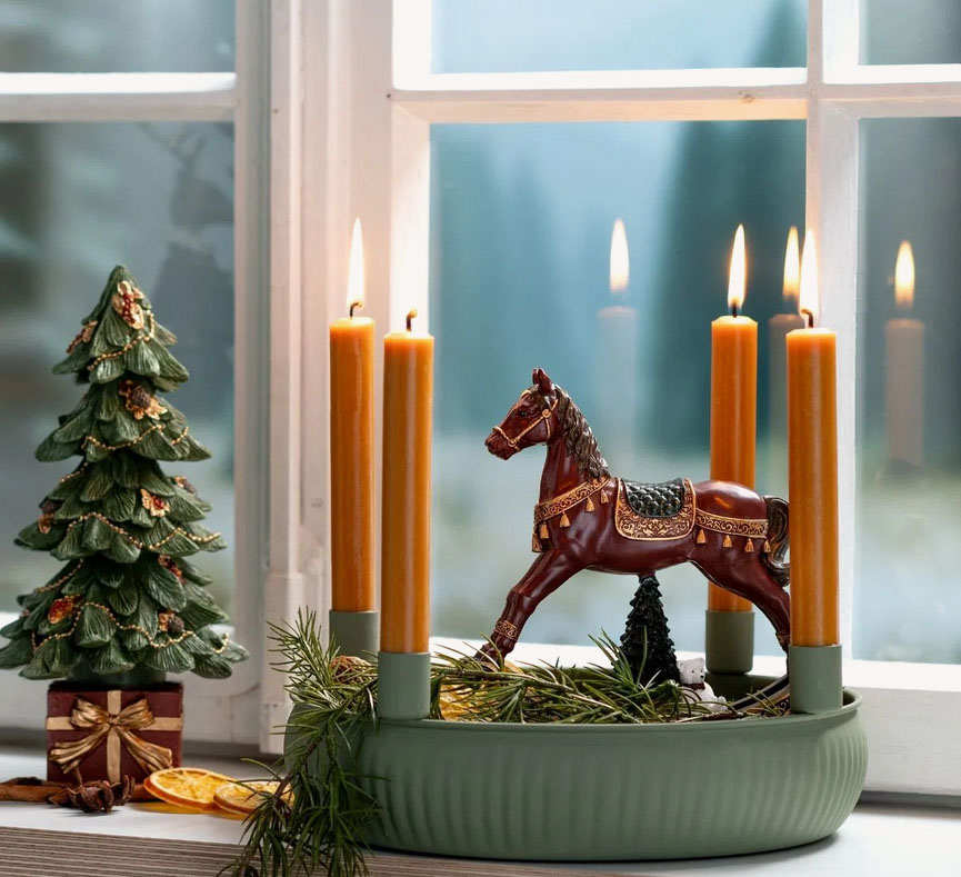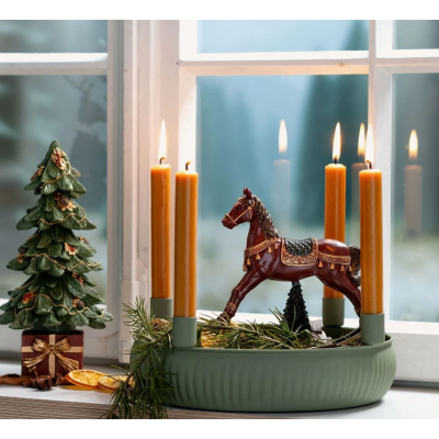 Figura konjića od polirezina (13x13 cm) unosi veselu nostalgiju u svaki dom. Pažljivo izrađeni detalji, uključujući malu jelkicu i belog medu koji se nežno ljuljuškaju, čine ovaj konjić savršenim božićnim poklonom, kako za malu devojčicu, tako i za dragu baku.