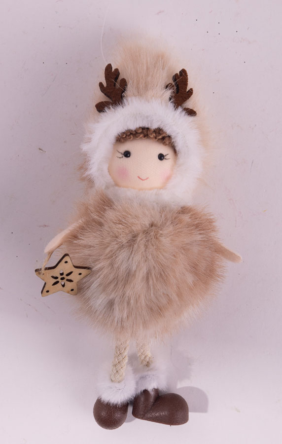 Ukras u obliku slatke devojčice u kožnim čizmicama i kapom irvasa na glavi spremna je da osvoji dečije srce. Visine 17 cm,u toplim tonovima idealan je dodatak novogodišnjem vašoj jelci, aranžmanu ili kao poklon maloj devojčici koja voli prazničnu magiju.