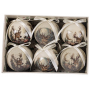 Set od 6 ukrasnih kugli u dekorativnoj kutiji donosi duh starih novogodišnjih čestitki u vaš dom. Svaka kugla prikazuje vintage sliku jelena, unoseći toplinu i nostalgiju praznika. Lagane i izrađene od papira, kugle prečnika 60 mm podjednako lepo izgledaju na jelci ili kao šarmantan poklon ispod nje.