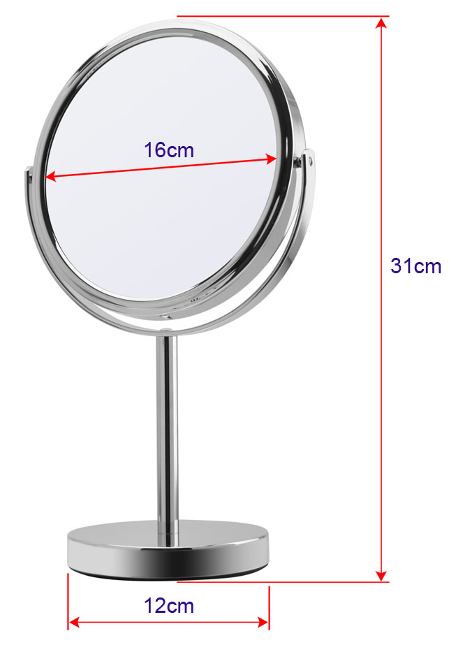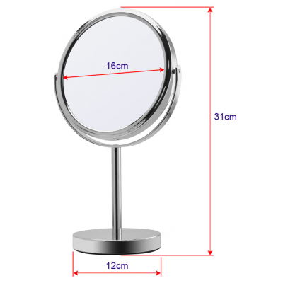 Stono metalno ogledalo sa uveličavajućim staklom x7. Uveličanjem 7x pruža izuzetnu jasnoću i preciznost, idealno za šminkanje, negu lica i oblikovanje obrva. Sa elegantnim srebrnim okvirom, lako je uklopljivo u svaki enterijer. Čista klasika. Visina ogledala je 31cm, a prečnik samog ogledala 16cm. Jednostavno i funkcionalno. Pakovano je u belu poklon kutiju, bezbedno za transport.