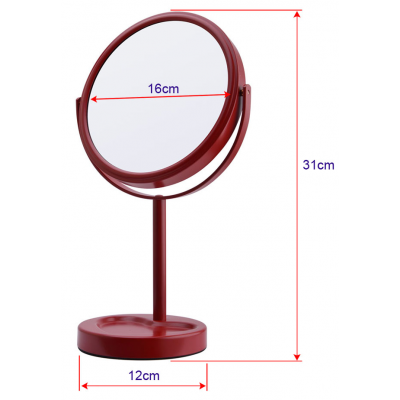 Crveno metalno ogledalo sa uveličanjem x5, i neobičnim postoljem koje ima udubljenje u obliku srca za sitnice. Živahno i romantično. Crvena boja unosi radost u svaki prostor, a postolje sa udubljenjem u obliku srca dodaje šarmantnu i nežnu notu. Savršen moderan poklon koji nosi energiju, strast i nesvakidašnjost sa sobom. Prečnik samog stakla je 16cm, pakovano je u belu poklon kutiju , bezbedno za slanje.