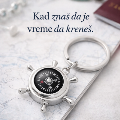 Metalni privezak za ključeve sa funkcionalnim kompasom.Elegantnog dizajna i precizne izrade, ovaj privezak nije samo dekorativni dodatak, već i mali, pravi kompas koji može poslužiti u svakodnevnim situacijama. Prečnik kompasa 3 cm, dolazi upakovan u crnu, čvrstu poklon kutiju – spreman za darivanje.