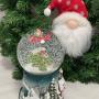 Novogodišnja XL vodena, muzička, snežna kugla sa Deda Mrazom u avionu koji leti iznad odžaka kućice .Na dnu kugle kada se uključi prekidač sneg počne da veje, avion leti u krug i kreće muzika specifična za božićne i novogodišnje praznike. Smenjuje se nekoliko melodija. Potrebne su 3 AA baterije od 1,5 volta. Postolje i figure u kugli su od polirezina. Prečnik staklene kugle je 10cm. Visina sa postoljem 21cm.