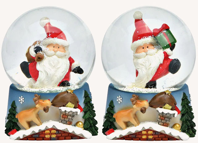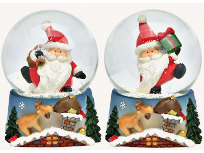 Vodena kugla sa skakutavim Deda Mrazom i irvasom koji pomaže da džak sa poklonima ugura u dimnjak. Čitava božićna priča na jednom mestu. Veličina 9cm