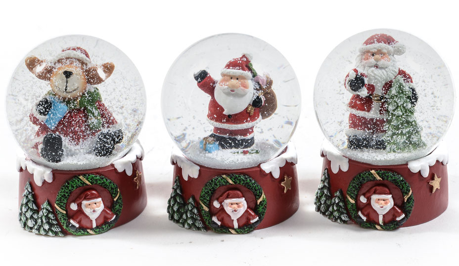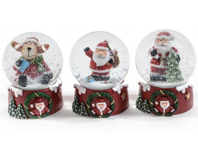 Snežna vodena kugla , prečnika 6,5 cm, na postolju od polirezina. Dostupna u tri motiva, Deda mraz sa džakom i poklonima, Deda Mraz sa jelkom i blentavi Irvas. Poklon za sve uzraste, jer čarolija vodene kugle ne poznaje godine!