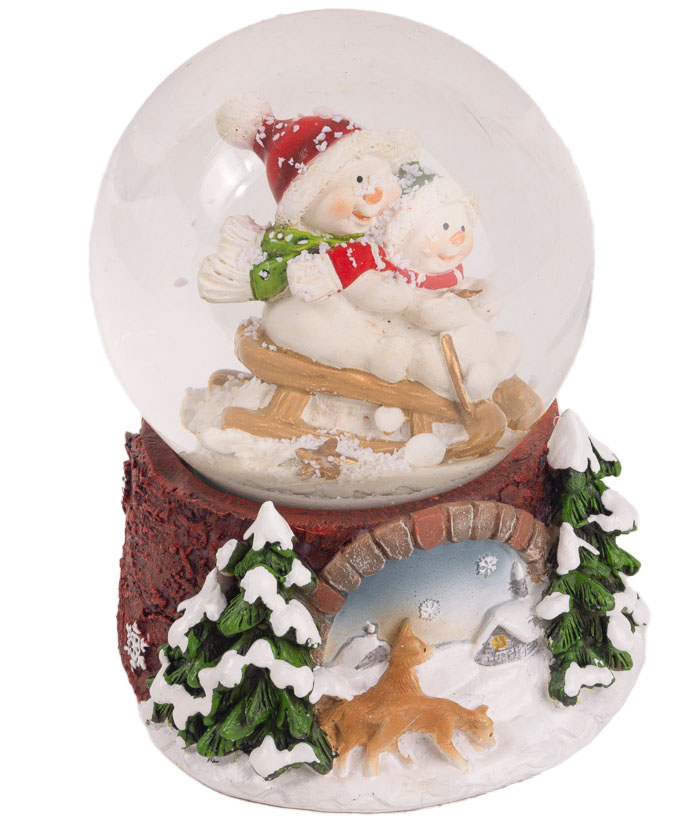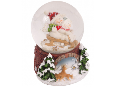 Vodena snežna kugla sa veselim sneškićima koji se sankaju niz snežnu padinu donosi vedrinu u vaš dom. Postolje od polirezina ukrašeno je zimskim detaljima, a kugla prečnika 9 cm lako pronalazi mesto na polici, radnom stolu ili pored jelke. Dovoljno je samo da je promućkate – i sneg će početi da veje!