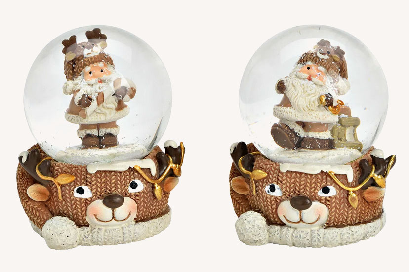 Mala snežna kugla sa šaškastim Deda Mrazom koji nosi kapicu sa irvasovim rogovima unosi vedrinu i toplinu u prazničke dane. Postolje u obliku štrikane kapice i topli tonovi čine je neobičnim, ali šarmantnim dodatkom svakom domu. Kugla prečnika 6 cm je poklon koji lako pronađe put do svakog osmeha.