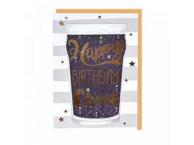 Mini čestitka sa kovertom – savršen detalj uz svaki poklon, dimenzije 7x10cm. Dovoljno mala da stane ispod ukrasne mašne, a opet dovoljno velika da na njoj zapišete iskrenu poruku, čestitku ili lepu misao. Na prugastoj podlozi čaša puna crnog piva i natpis Happy Birthday, cheers. Upakovanau u providnu zaštitnu foliju. Kupovinom 160 kom bilo koje vrste dobijate prezentoar za izlaganje.